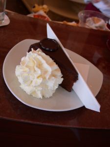 無甜的鮮奶油配著蛋糕可以讓蛋糕的巧克力甜味變的不會那麼膩,好吃。又晃了幾家店後傍晚